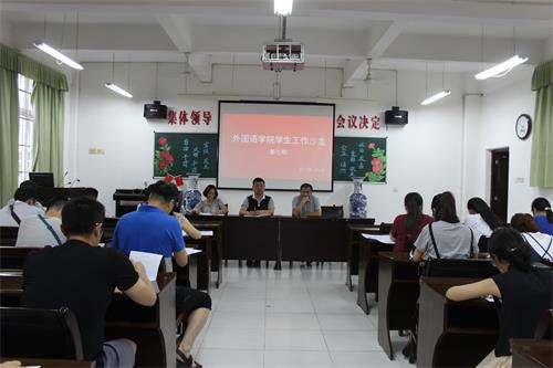 为加强学生工作交流,6月4日晚,外国语学院于香远楼315会议室召开第七期学生工作沙龙,外国语学院党委副书记彭晓主持了会议,全体辅导员、班主任老师参加了此次沙龙。